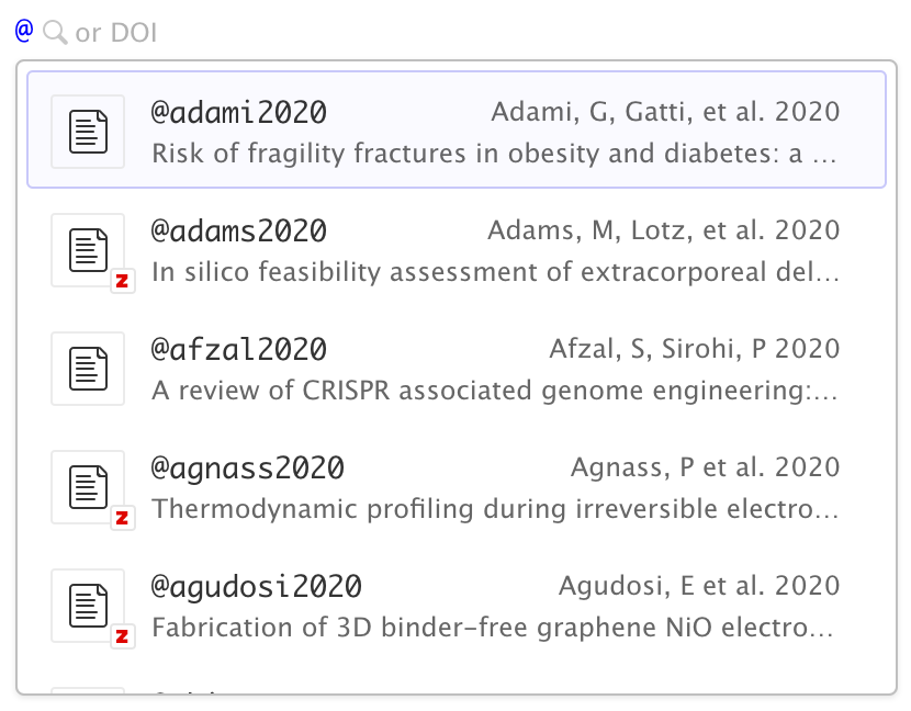 Zotero references will also show up automatically in visual editor completions:
